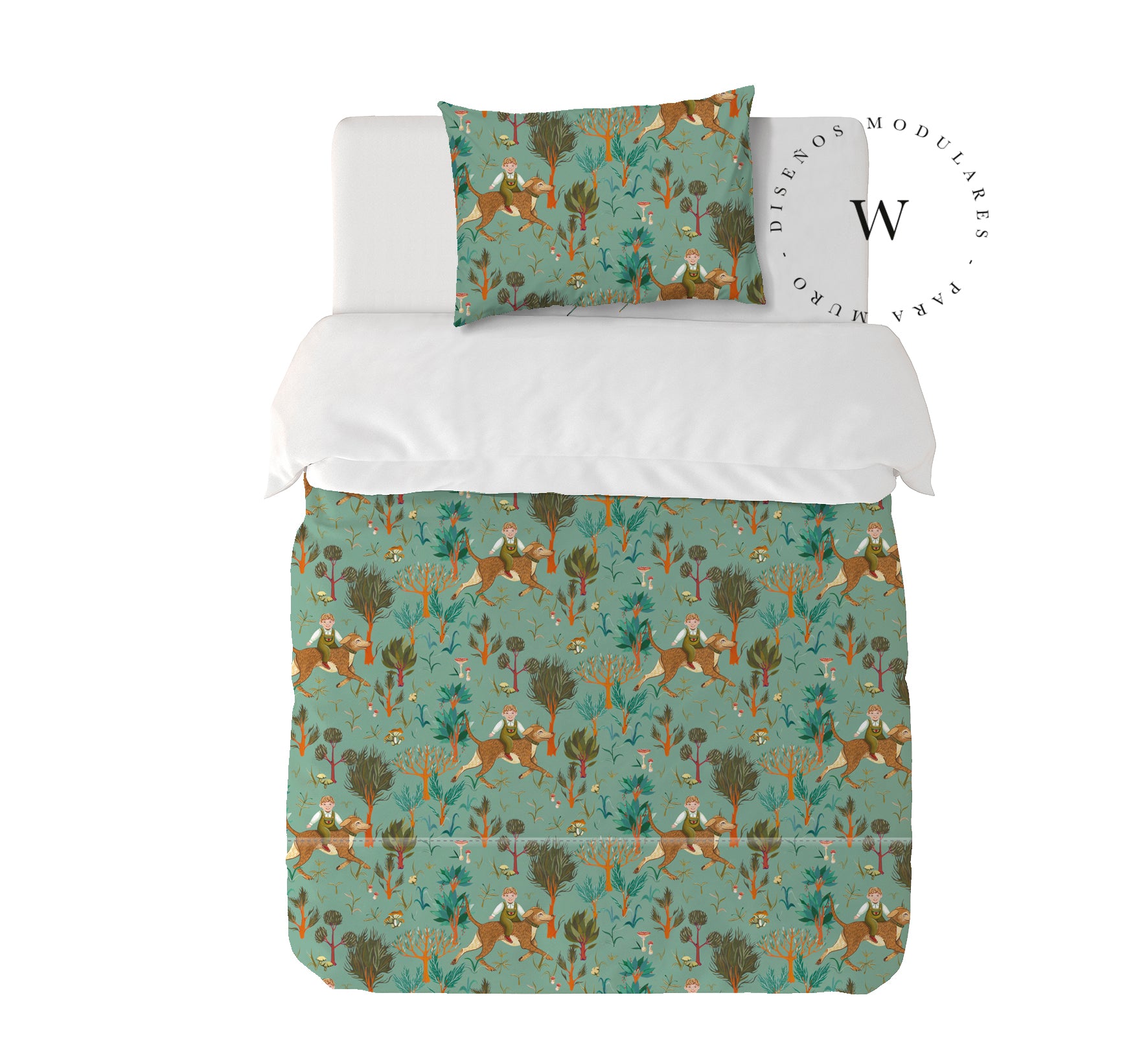 8. Funda de plumón 1 Plaza 150 x 240 cm: Funda plumón, diseño por una cara, reverso liso con cierre invisible en la parte inferior + 1 funda de almohada 70 x 50 cm con cierre invisible. No incluye rellenos.