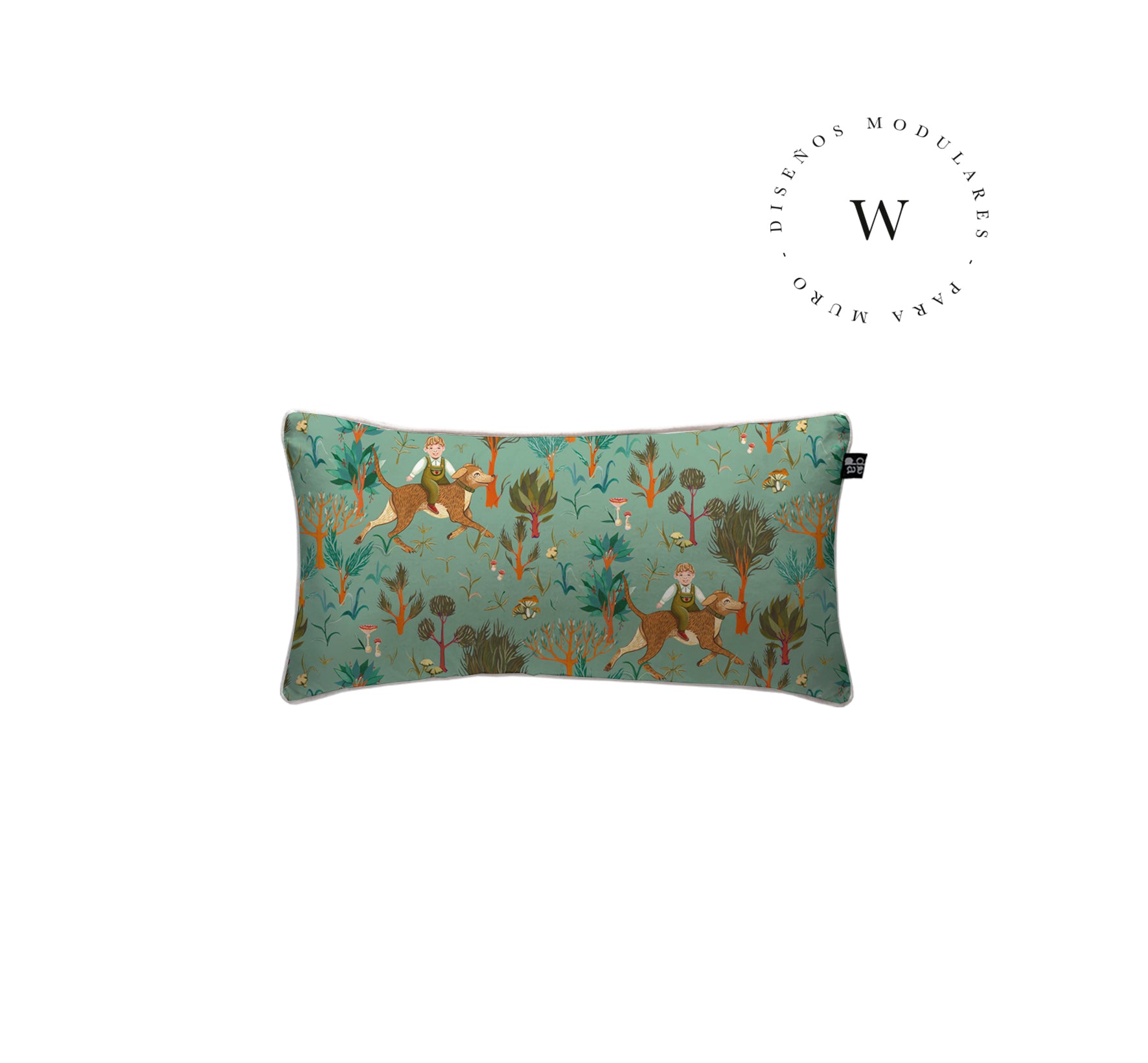 2. Cojín 60 x 40 cm: Diseño por ambos lados, con cordón perimetral, cierre invisible, relleno algodón sintético removible.