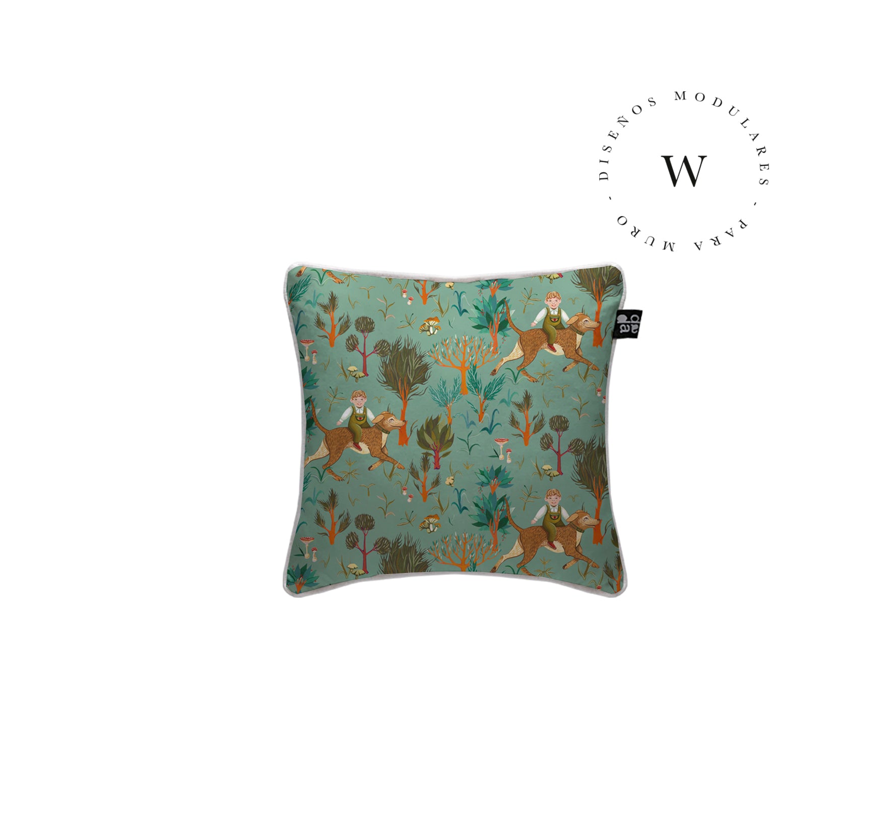 1. Cojín 45 x 45 cm: Diseño por ambos lados, con cordón perimetral, cierre invisible, relleno algodón sintético removible.