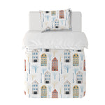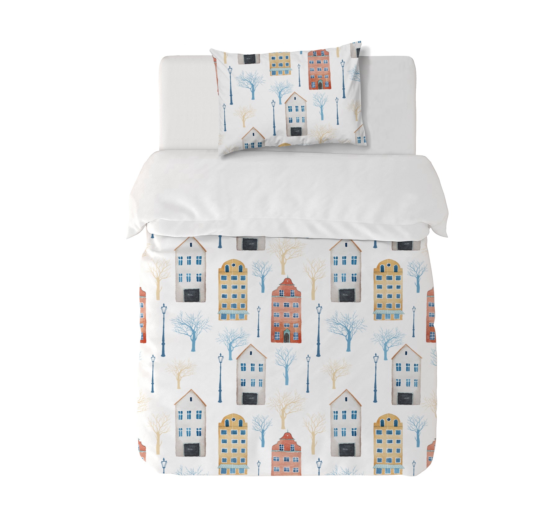 8. Funda de plumón 1 Plaza 150 x 240 cm: Funda plumón, diseño por una cara, reverso liso con cierre invisible en la parte inferior + 1 funda de almohada 70 x 50 cm con cierre invisible. No incluye rellenos.