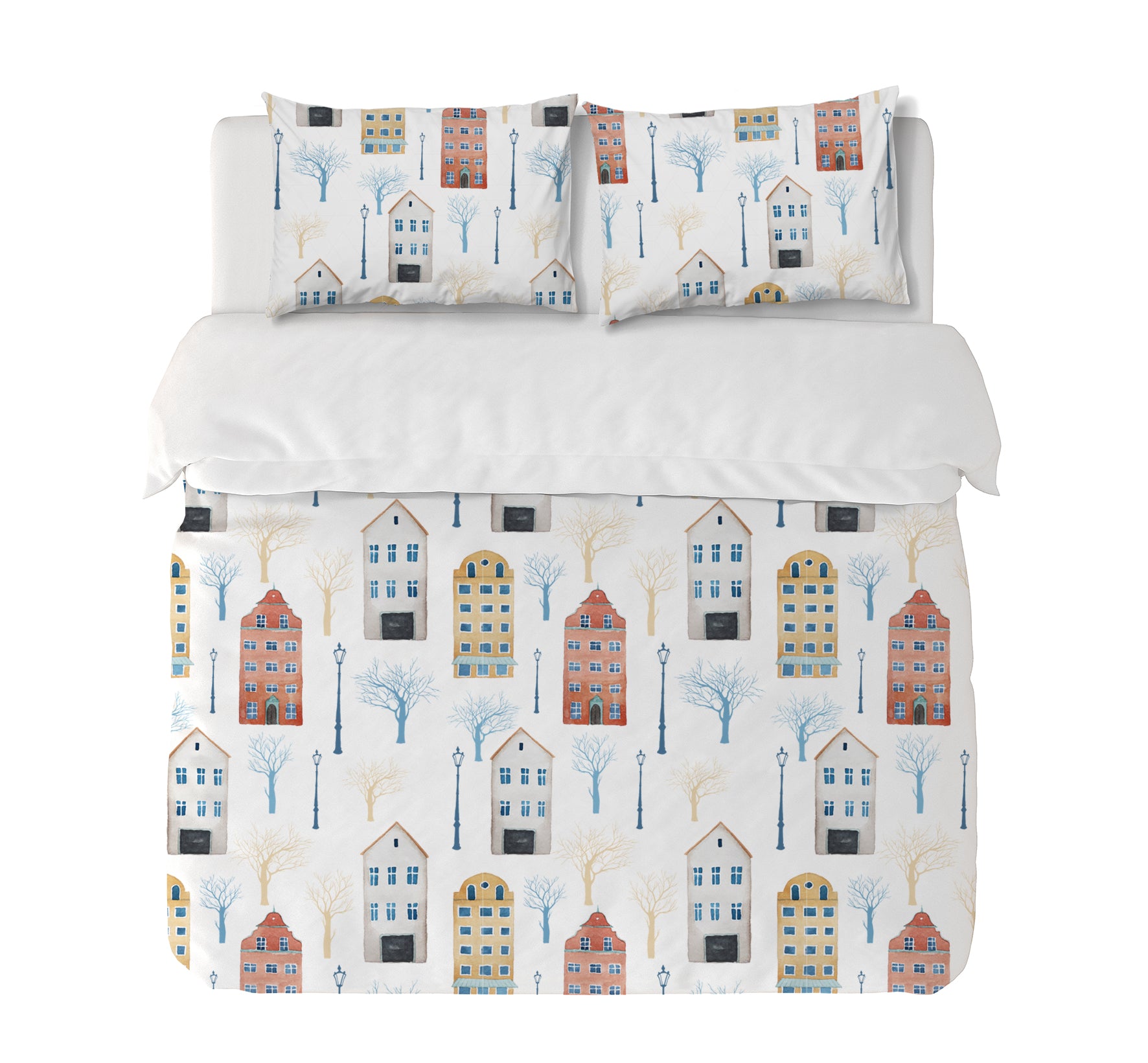10. Funda de plumón Queen 240 x 245 cm: Funda plumón, diseño por una cara, reverso liso con cierre invisible en la parte inferior + 2 fundas de almohadas 70 x 50 cm con cierre invisible. No incluye rellenos.