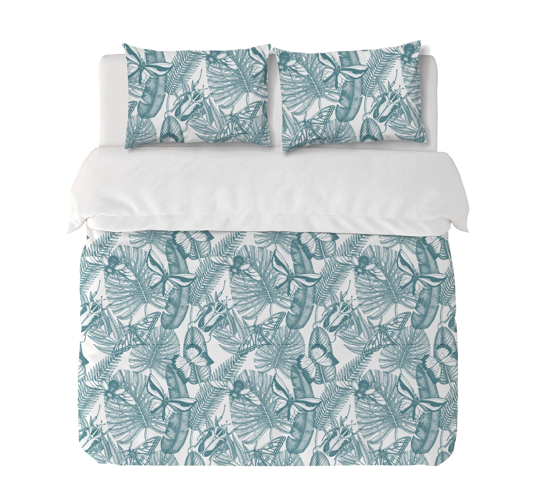 10. Funda de plumón Queen 240 x 245 cm: Funda plumón, diseño por una cara, reverso liso con cierre invisible en la parte inferior + 2 fundas de almohadas 70 x 50 cm con cierre invisible. No incluye rellenos.
