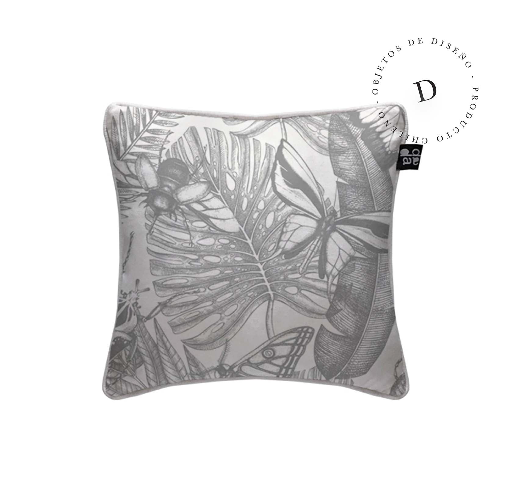 1. Cojín 45 x 45 cm: Diseño por ambos lados, con cordón perimetral, cierre invisible, relleno algodón sintético removible.
