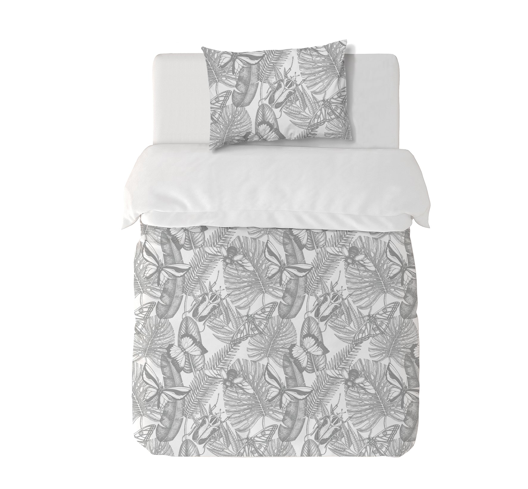 8. Funda de plumón 1 Plaza 150 x 240 cm: Funda plumón, diseño por una cara, reverso liso con cierre invisible en la parte inferior + 1 funda de almohada 70 x 50 cm con cierre invisible. No incluye rellenos.