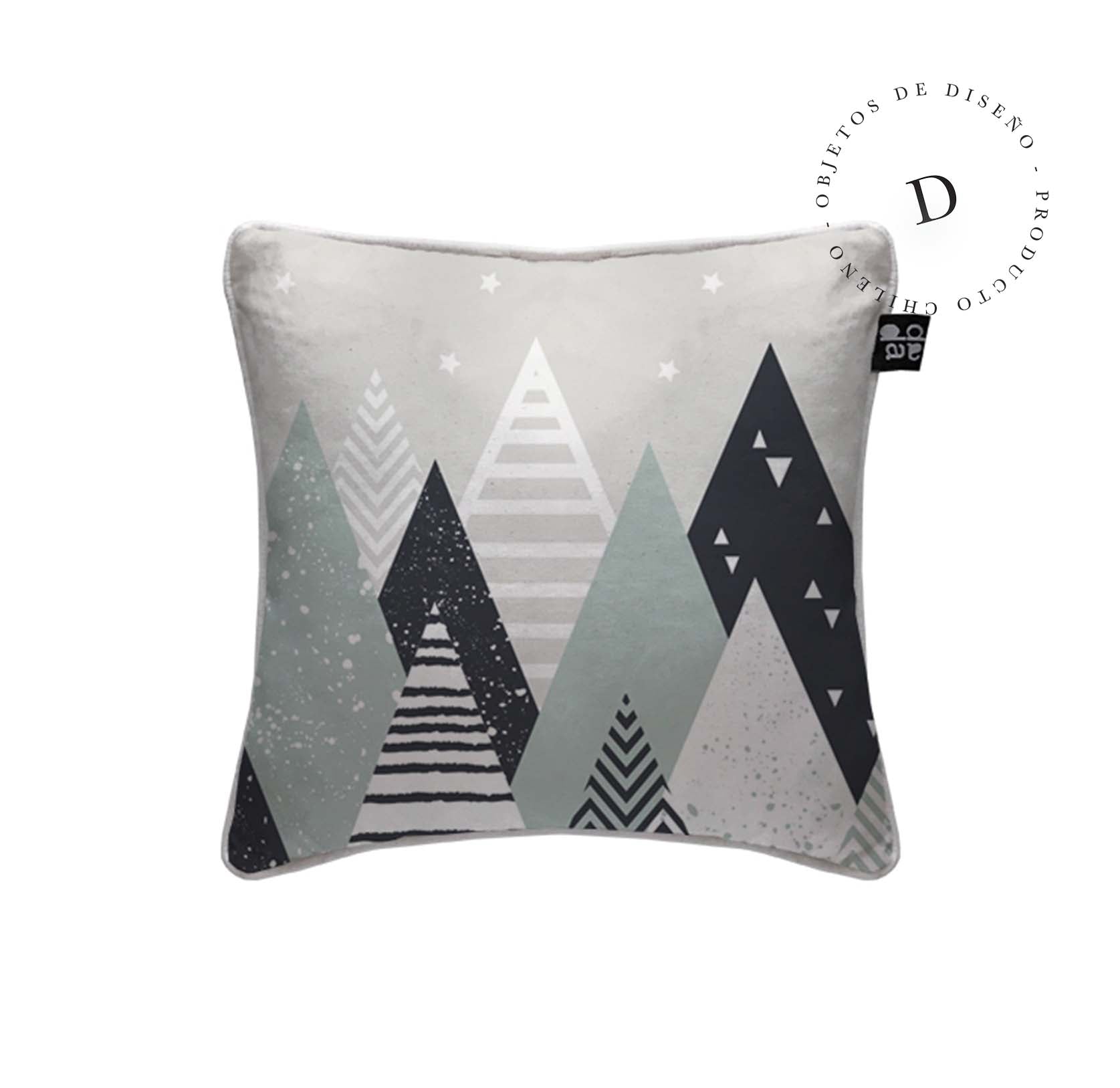 1. Cojín 45 x 45 cm: Diseño por ambos lados, con cordón perimetral, cierre invisible, relleno algodón sintético removible.