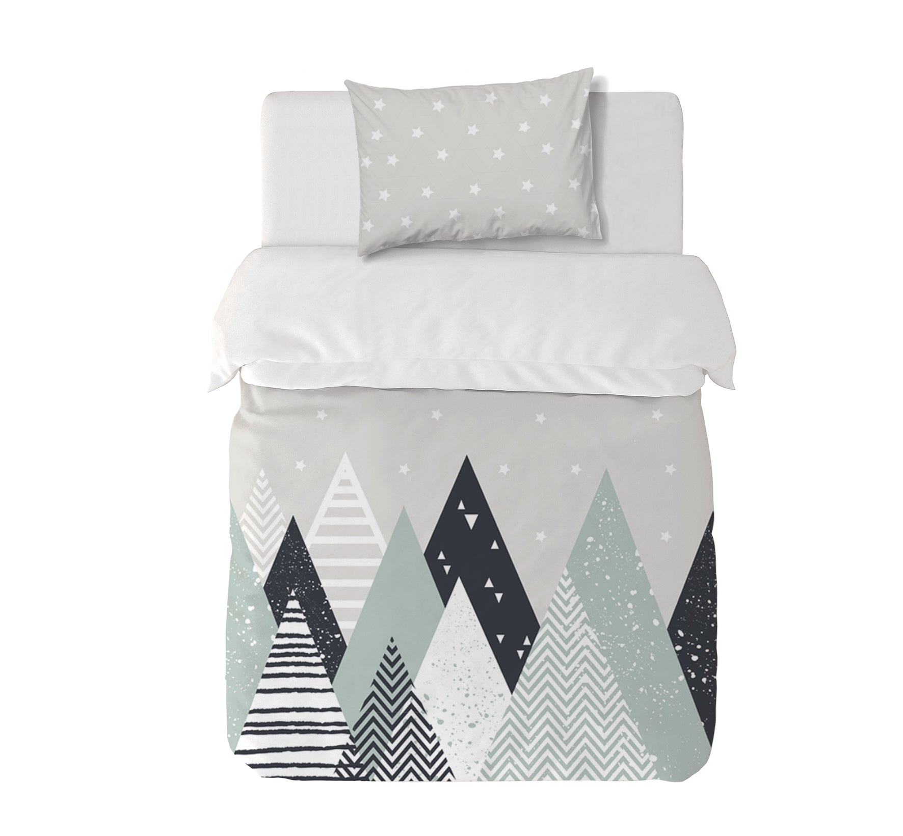 9. Funda de plumón 1 1/2 Plaza 180 x 240 cm: Funda plumón, diseño por una cara, reverso liso con cierre invisible en la parte inferior + 1 funda de almohada 70 x 50 cm con cierre invisible. No incluye rellenos.