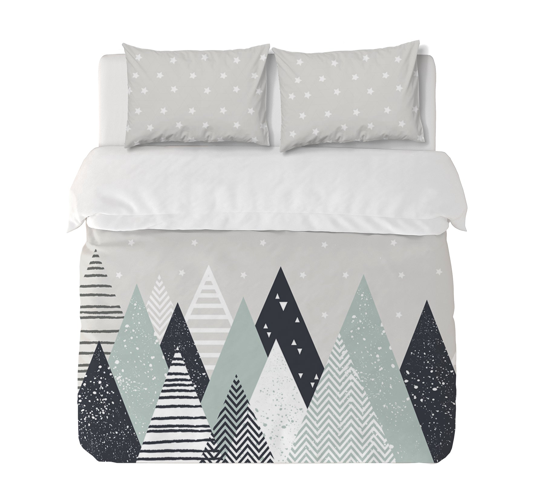 11. Funda de plumón King 270 x 245 cm: Funda plumón, diseño por una cara, reverso liso con cierre invisible en la parte inferior + 2 fundas de almohadas 90 x 50 cm con cierre invisible. No incluye rellenos.