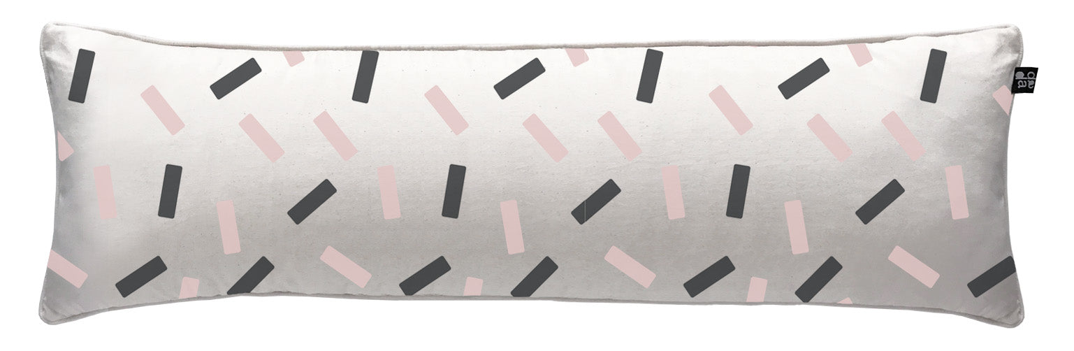 5. Cojín 120 x 35 cm: Diseño por ambos lados, con cordón perimetral, cierre invisible, relleno algodón sintético removible.