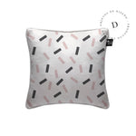 1. Cojín 45 x 45 cm: Diseño por ambos lados, con cordón perimetral, cierre invisible, relleno algodón sintético removible.