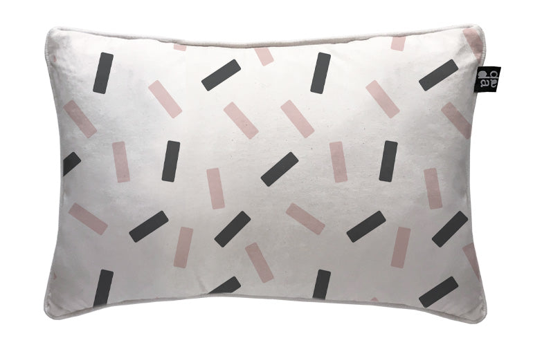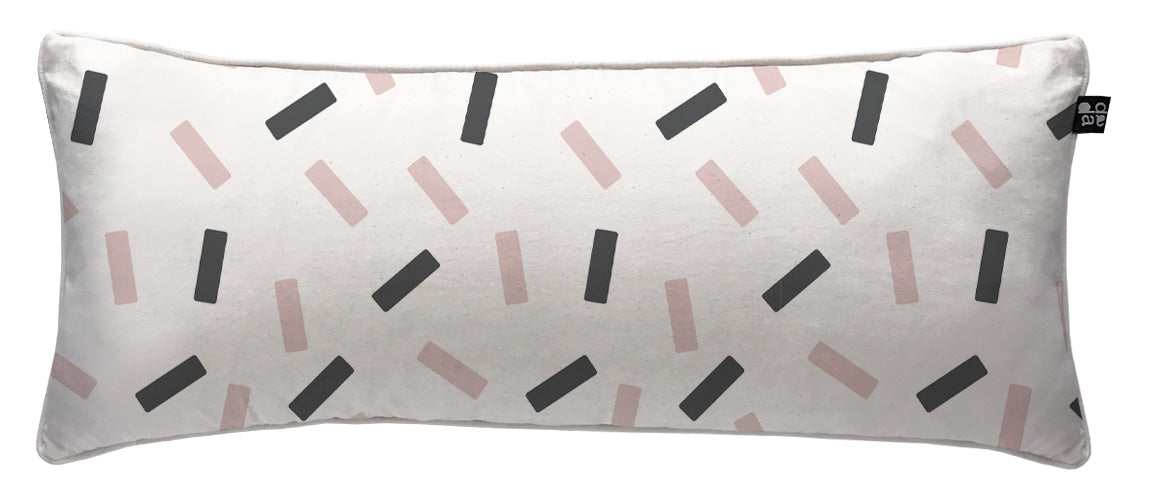 3. Cojín 70 x 35 cm: Diseño por ambos lados, con cordón perimetral, cierre invisible, relleno algodón sintético removible.