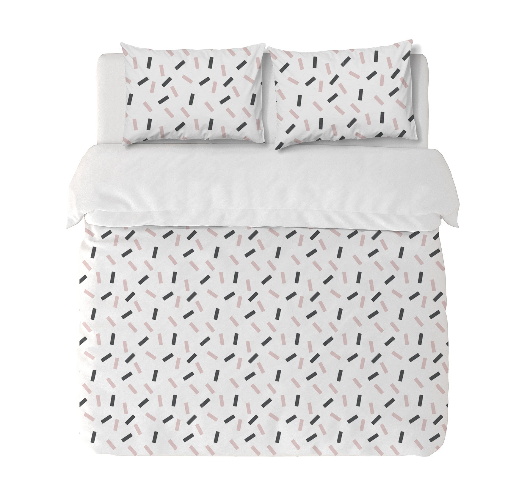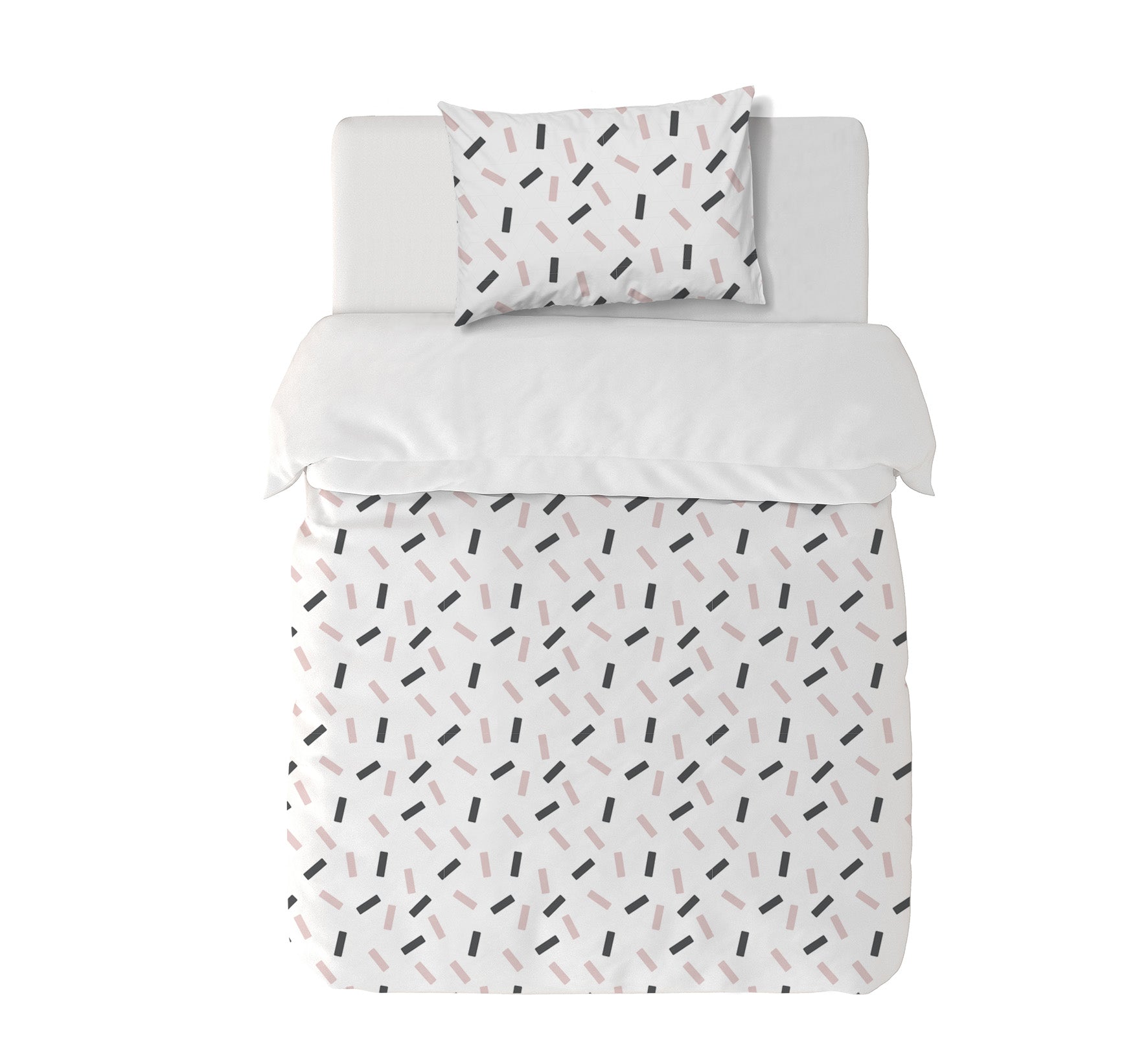 11. Funda de plumón King 270 x 245 cm: Funda plumón, diseño por una cara, reverso liso con cierre invisible en la parte inferior + 2 fundas de almohadas 90 x 50 cm con cierre invisible. No incluye rellenos.