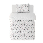 8. Funda de plumón 1 Plaza 150 x 240 cm: Funda plumón, diseño por una cara, reverso liso con cierre invisible en la parte inferior + 1 funda de almohada 70 x 50 cm con cierre invisible. No incluye rellenos.