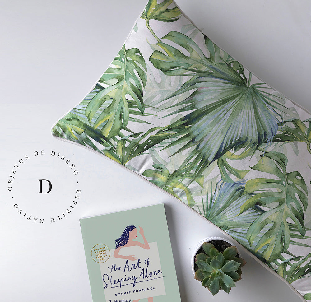 2. Cojín 60 x 40 cm: Diseño por ambos lados, con cordón perimetral, cierre invisible, relleno algodón sintético removible.