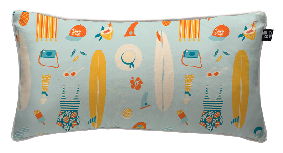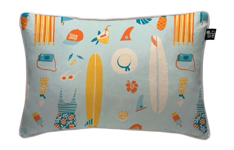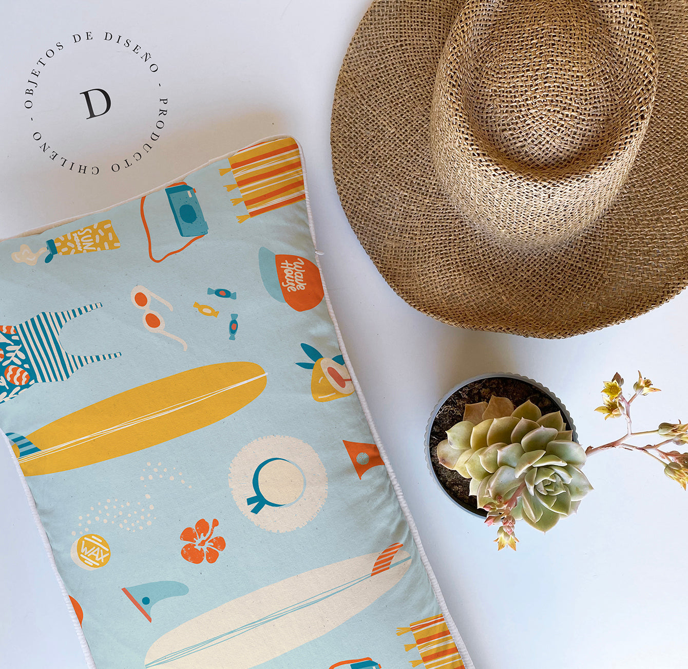 3. Cojín 70 x 35 cm: Diseño por ambos lados, con cordón perimetral, cierre invisible, relleno algodón sintético removible.