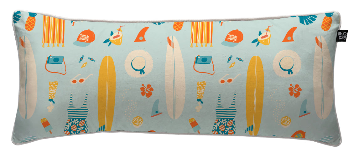 5. Cojín 120 x 35 cm: Diseño por ambos lados, con cordón perimetral, cierre invisible, relleno algodón sintético removible.