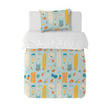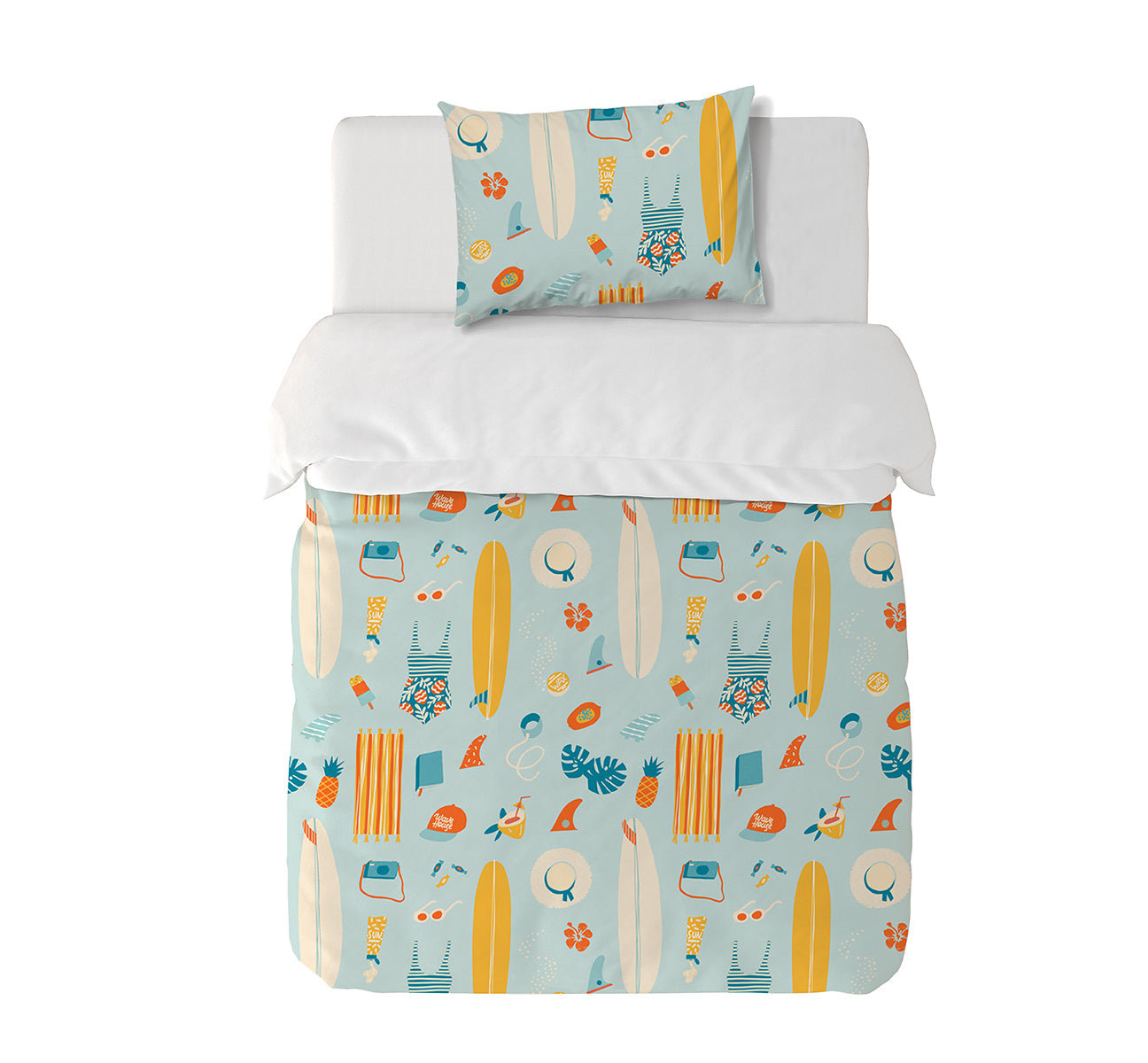 8. Funda de plumón 1 Plaza 150 x 240 cm: Funda plumón, diseño por una cara, reverso liso con cierre invisible en la parte inferior + 1 funda de almohada 70 x 50 cm con cierre invisible. No incluye rellenos.