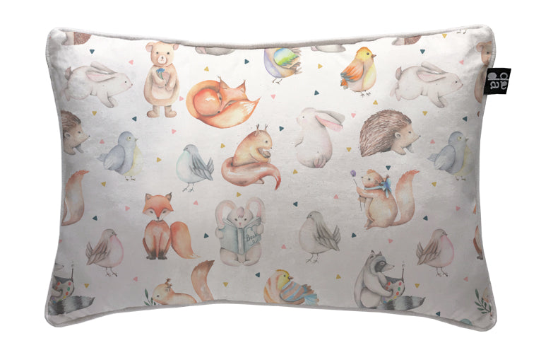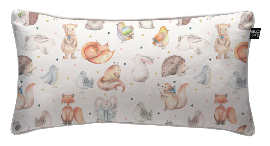 2. Cojín 60 x 40 cm: Diseño por ambos lados, con cordón perimetral, cierre invisible, relleno algodón sintético removible.