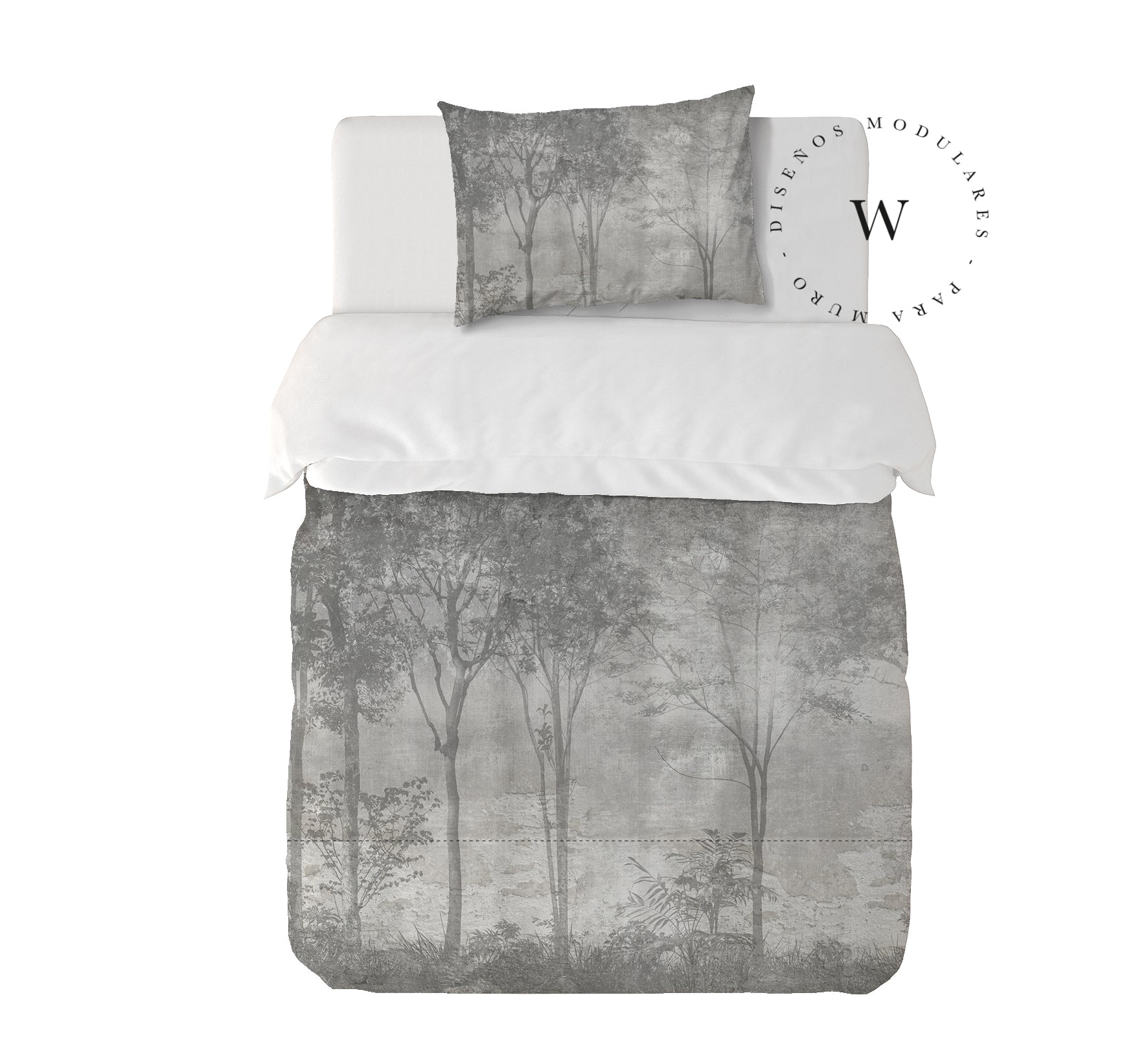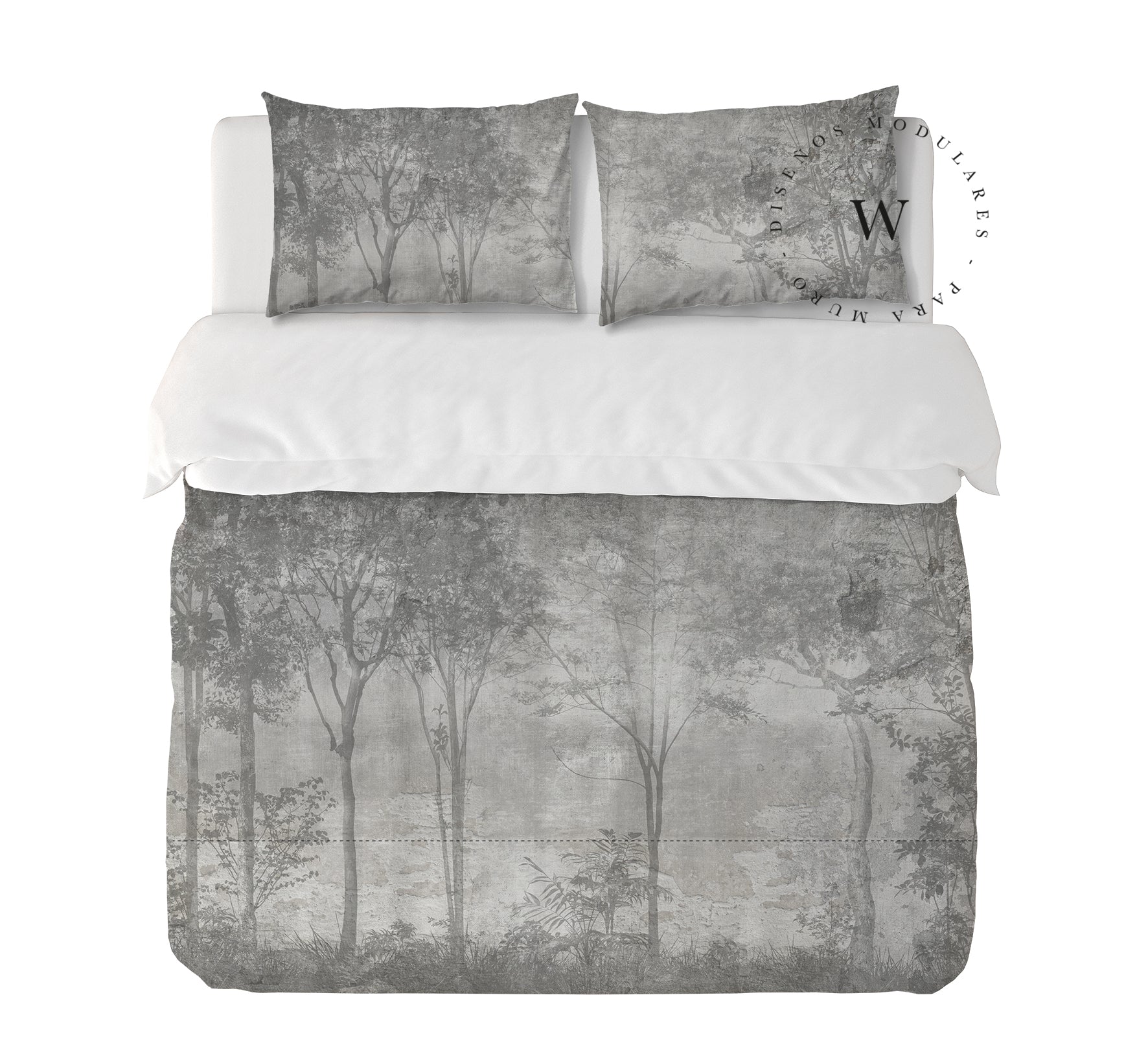 11. Funda de plumón King 270 x 245 cm: Funda plumón, diseño por una cara, reverso liso con cierre invisible en la parte inferior + 2 fundas de almohadas 90 x 50 cm con cierre invisible. No incluye rellenos.