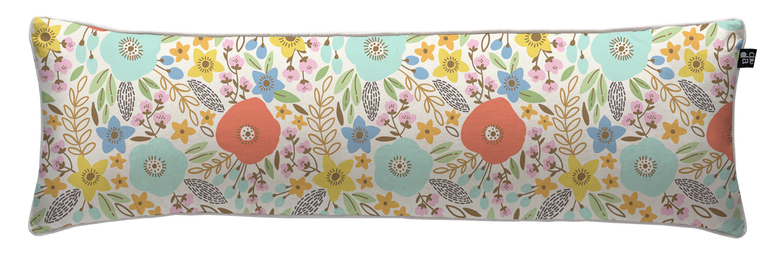 5. Cojín 120 x 35 cm: Diseño por ambos lados, con cordón perimetral, cierre invisible, relleno algodón sintético removible.