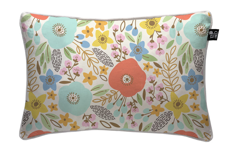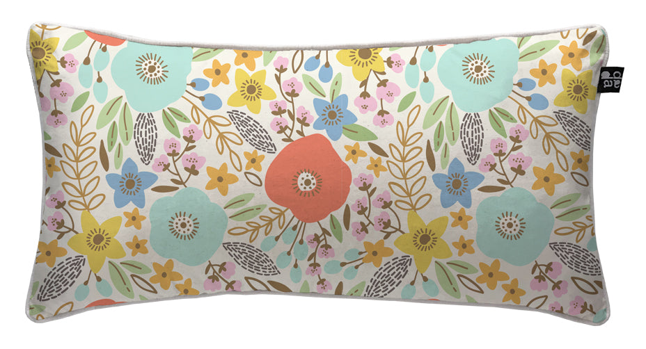 2. Cojín 60 x 40 cm: Diseño por ambos lados, con cordón perimetral, cierre invisible, relleno algodón sintético removible.