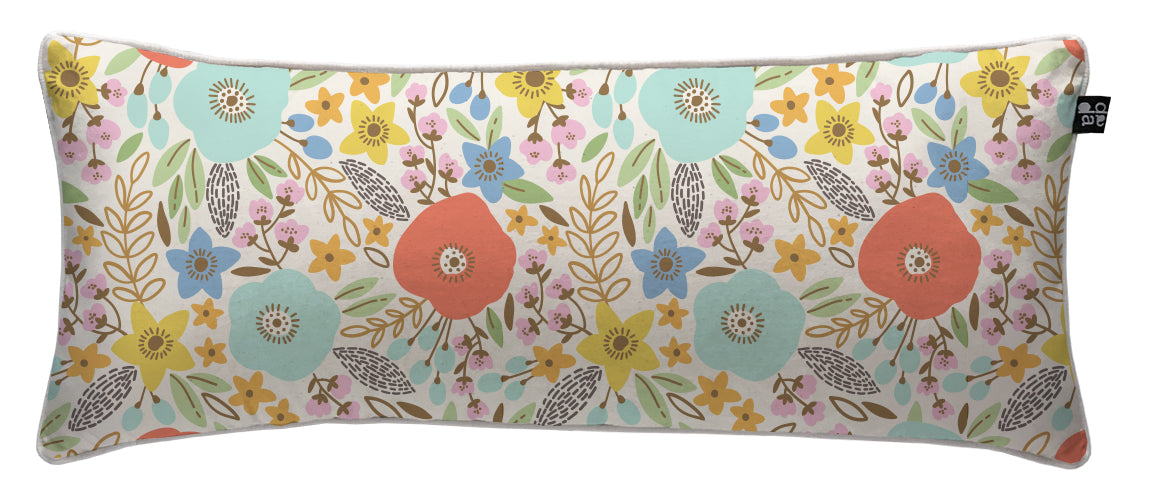 4. Cojín 90 x 35 cm: Diseño por ambos lados, con cordón perimetral, cierre invisible, relleno algodón sintético removible.