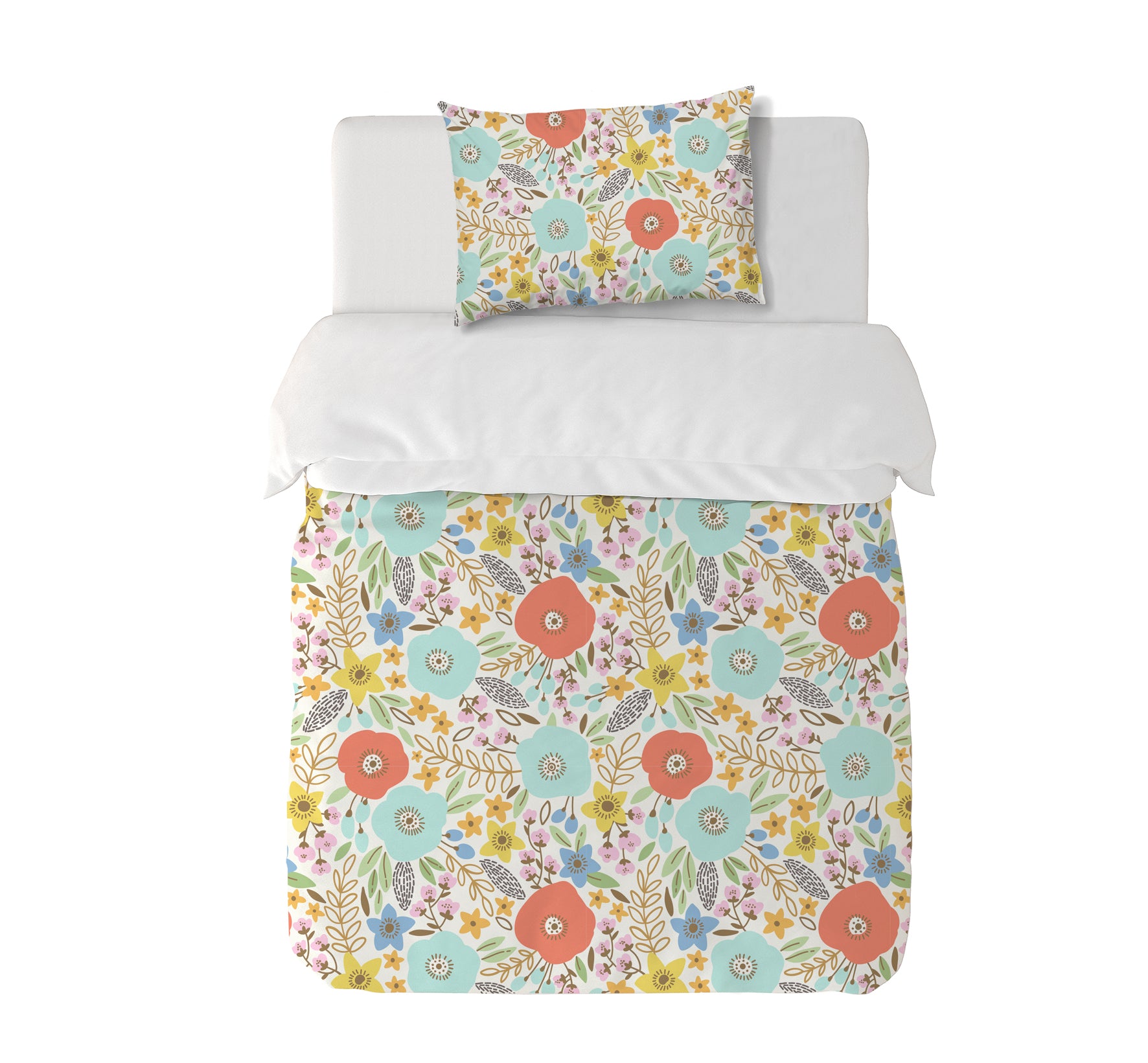 8. Funda de plumón 1 Plaza 150 x 240 cm: Funda plumón, diseño por una cara, reverso liso con cierre invisible en la parte inferior + 1 funda de almohada 70 x 50 cm con cierre invisible. No incluye rellenos.