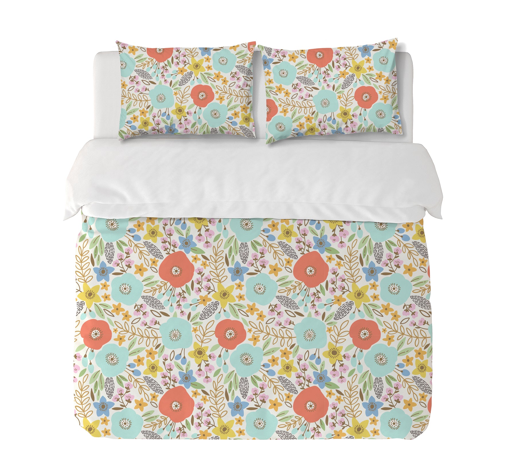 10. Funda de plumón Queen 240 x 245 cm: Funda plumón, diseño por una cara, reverso liso con cierre invisible en la parte inferior + 2 fundas de almohadas 70 x 50 cm con cierre invisible. No incluye rellenos.