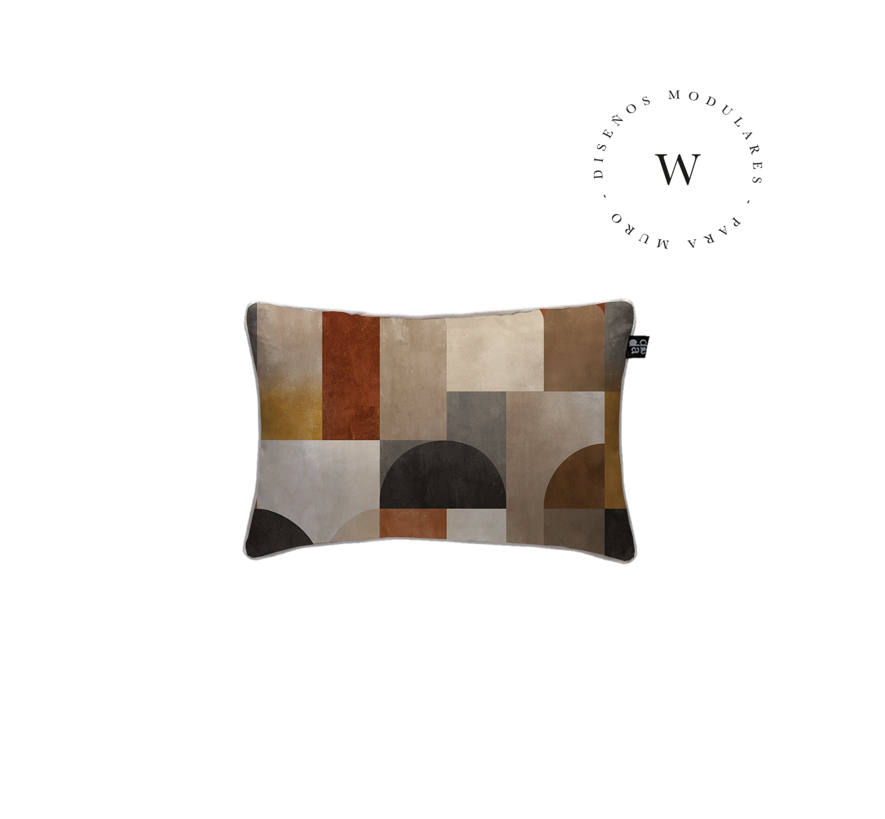 2. Cojín 60 x 40 cm: Diseño por ambos lados, con cordón perimetral, cierre invisible, relleno algodón sintético removible.