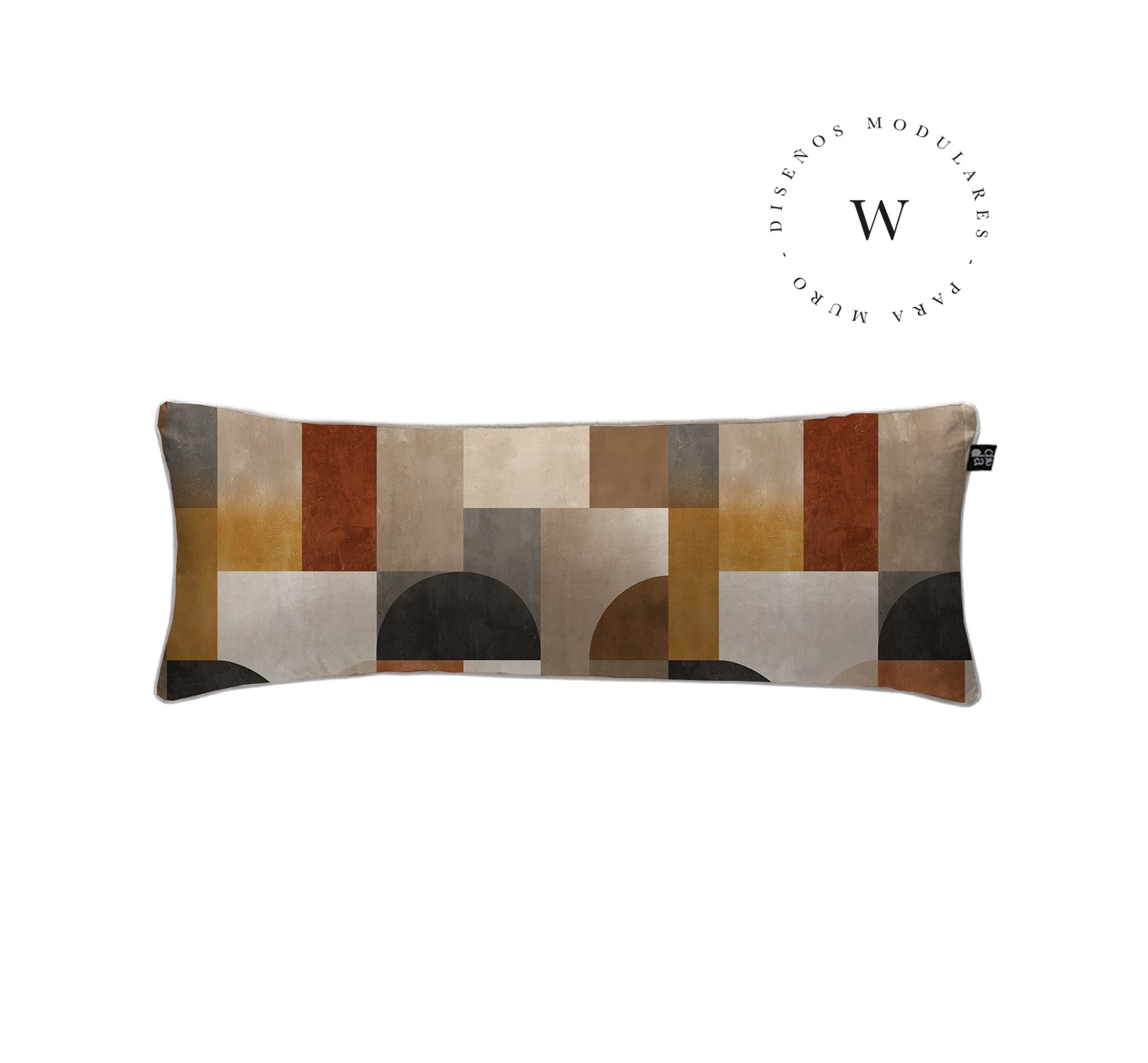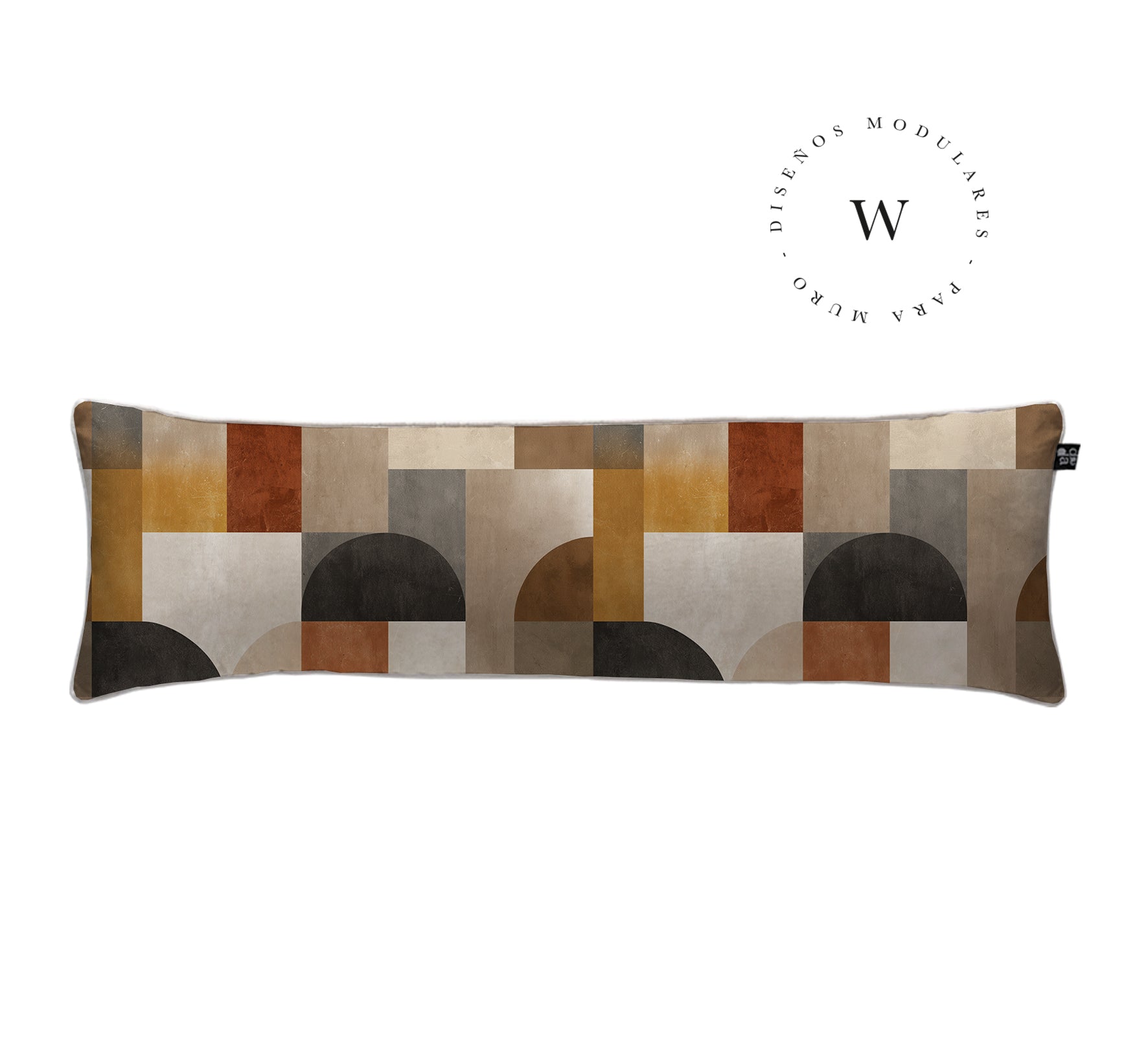 5. Cojín 120 x 35 cm: Diseño por ambos lados, con cordón perimetral, cierre invisible, relleno algodón sintético removible.