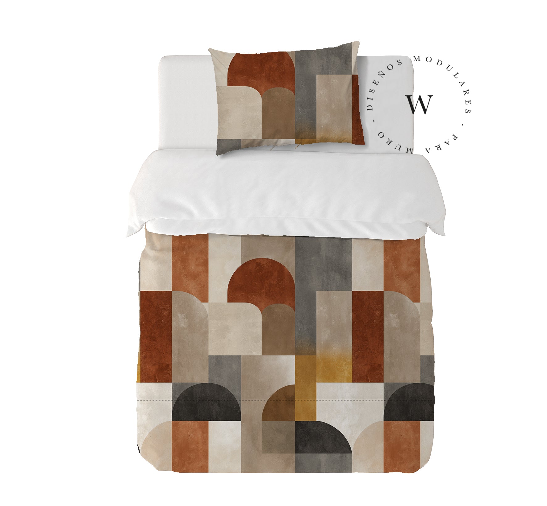 8. Funda de plumón 1 Plaza 150 x 240 cm: Funda plumón, diseño por una cara, reverso liso con cierre invisible en la parte inferior + 1 funda de almohada 70 x 50 cm con cierre invisible. No incluye rellenos.