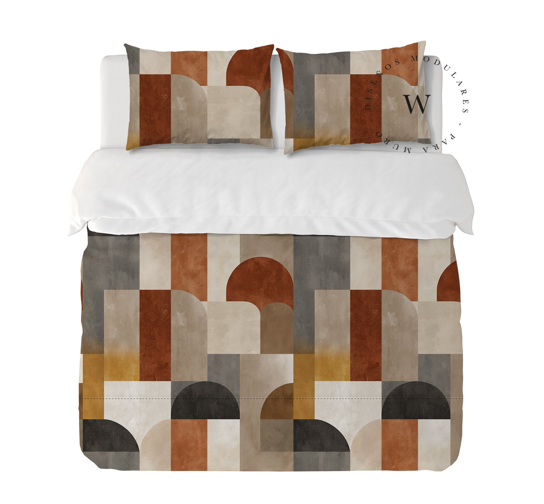 10. Funda de plumón Queen 240 x 245 cm: Funda plumón, diseño por una cara, reverso liso con cierre invisible en la parte inferior + 2 fundas de almohadas 70 x 50 cm con cierre invisible. No incluye rellenos.