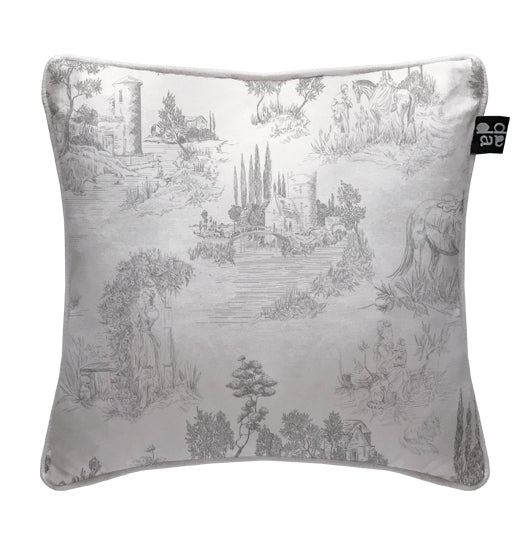 1. Cojín 45 x 45 cm: Diseño por ambos lados, con cordón perimetral, cierre invisible, relleno algodón sintético removible.