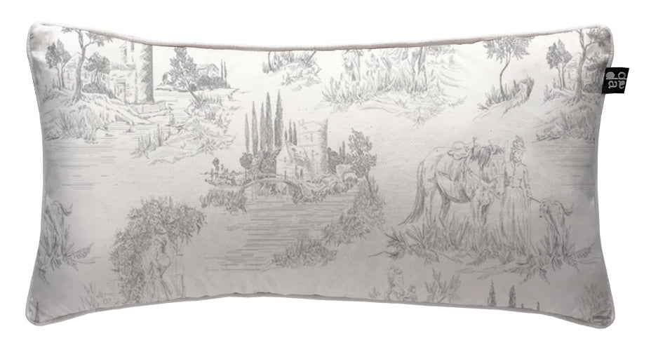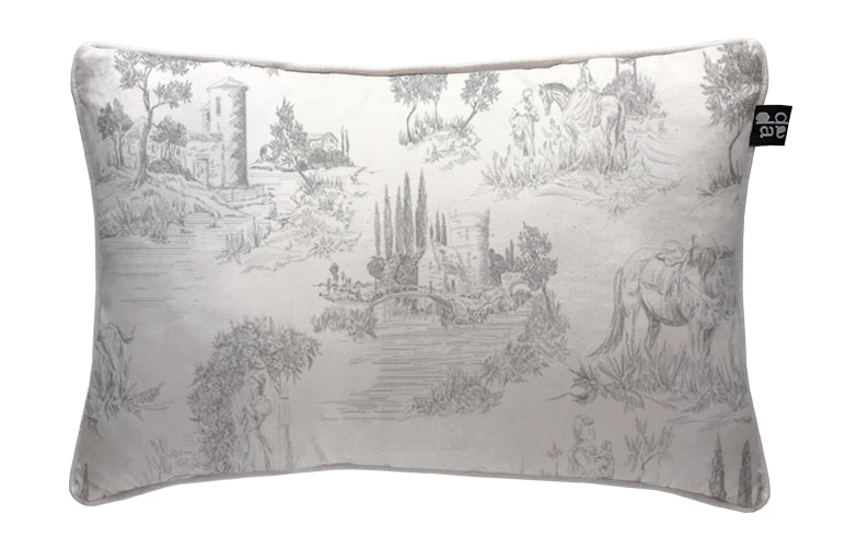 2. Cojín 60 x 40 cm: Diseño por ambos lados, con cordón perimetral, cierre invisible, relleno algodón sintético removible.