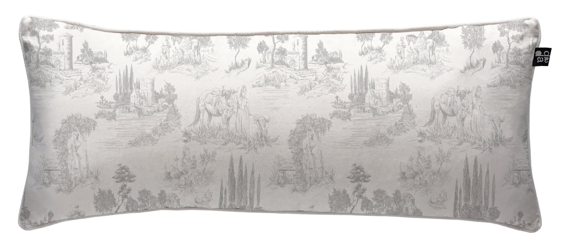 3. Cojín 70 x 35 cm: Diseño por ambos lados, con cordón perimetral, cierre invisible, relleno algodón sintético removible.