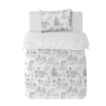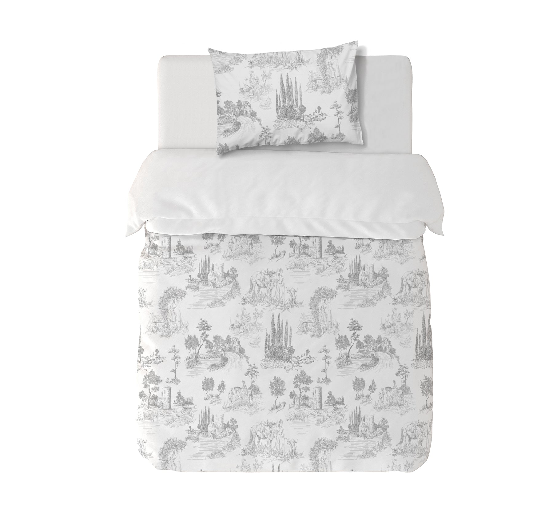 8. Funda de plumón 1 Plaza 150 x 240 cm: Funda plumón, diseño por una cara, reverso liso con cierre invisible en la parte inferior + 1 funda de almohada 70 x 50 cm con cierre invisible. No incluye rellenos.