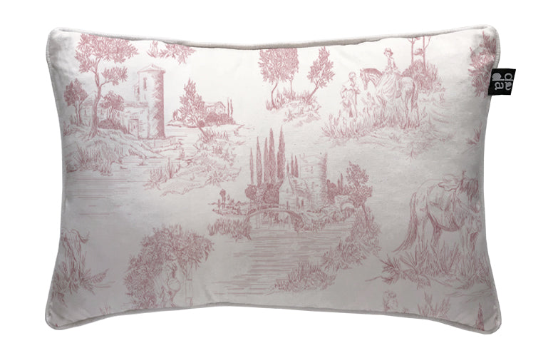 2. Cojín 60 x 40 cm: Diseño por ambos lados, con cordón perimetral, cierre invisible, relleno algodón sintético removible.