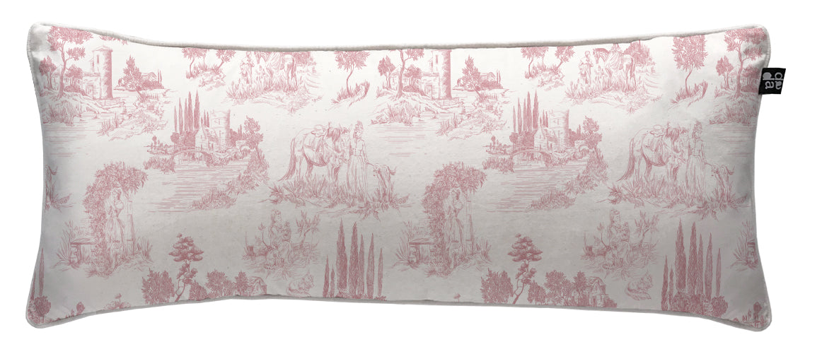 3. Cojín 70 x 35 cm: Diseño por ambos lados, con cordón perimetral, cierre invisible, relleno algodón sintético removible.