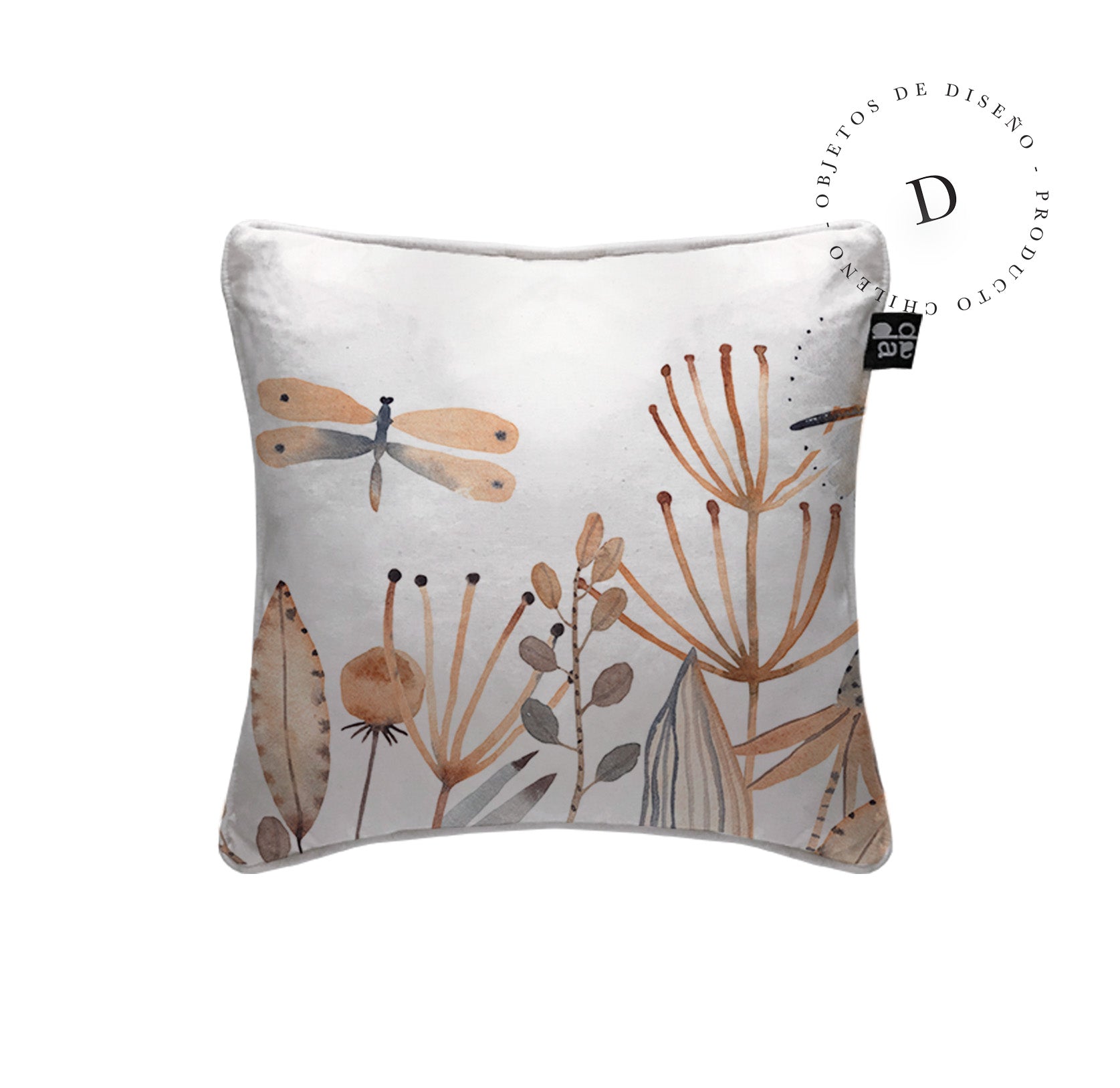 1. Cojín 45 x 45 cm: Diseño por ambos lados, con cordón perimetral, cierre invisible, relleno algodón sintético removible.