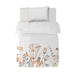 8. Funda de plumón 1 Plaza 150 x 240 cm: Funda plumón, diseño por una cara, reverso liso con cierre invisible en la parte inferior + 1 funda de almohada 70 x 50 cm con cierre invisible. No incluye rellenos.