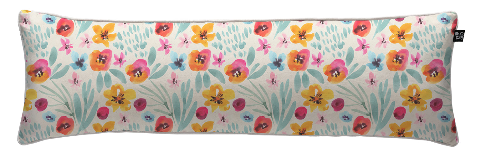 5. Cojín 120 x 35 cm: Diseño por ambos lados, con cordón perimetral, cierre invisible, relleno algodón sintético removible.