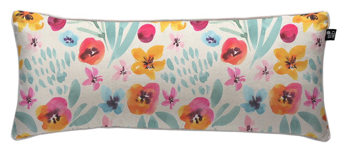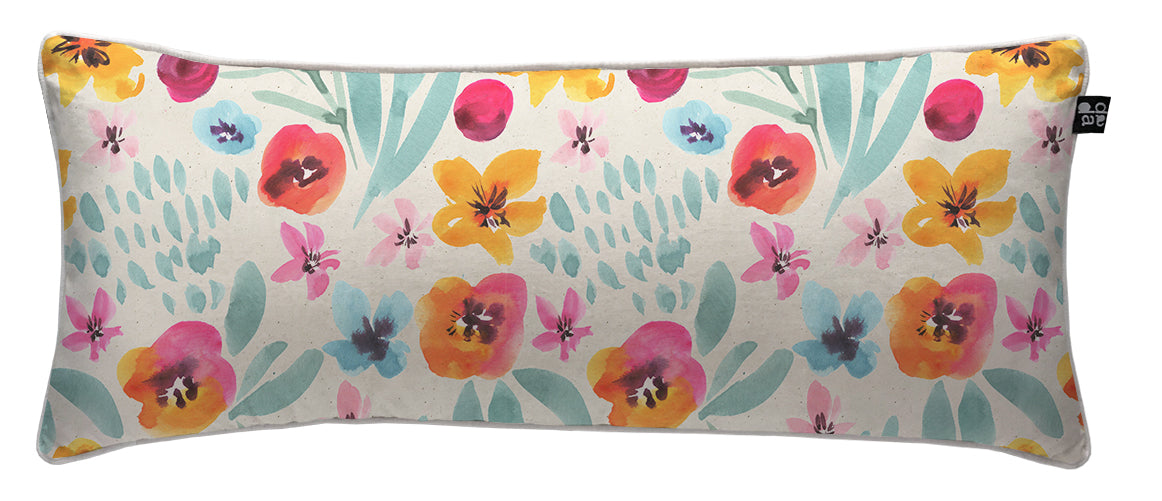 3. Cojín 70 x 35 cm: Diseño por ambos lados, con cordón perimetral, cierre invisible, relleno algodón sintético removible.