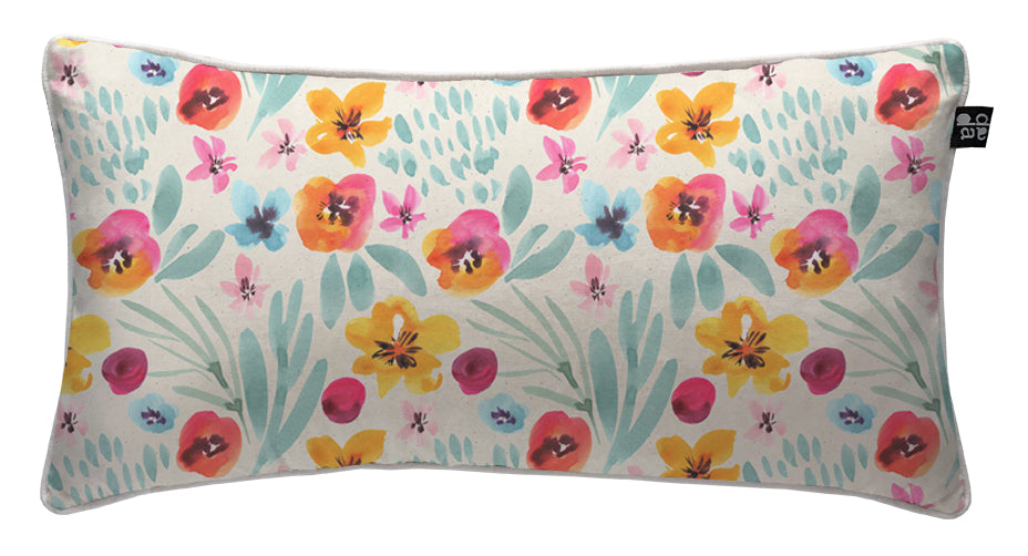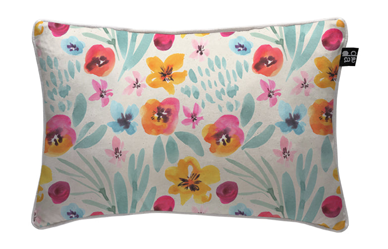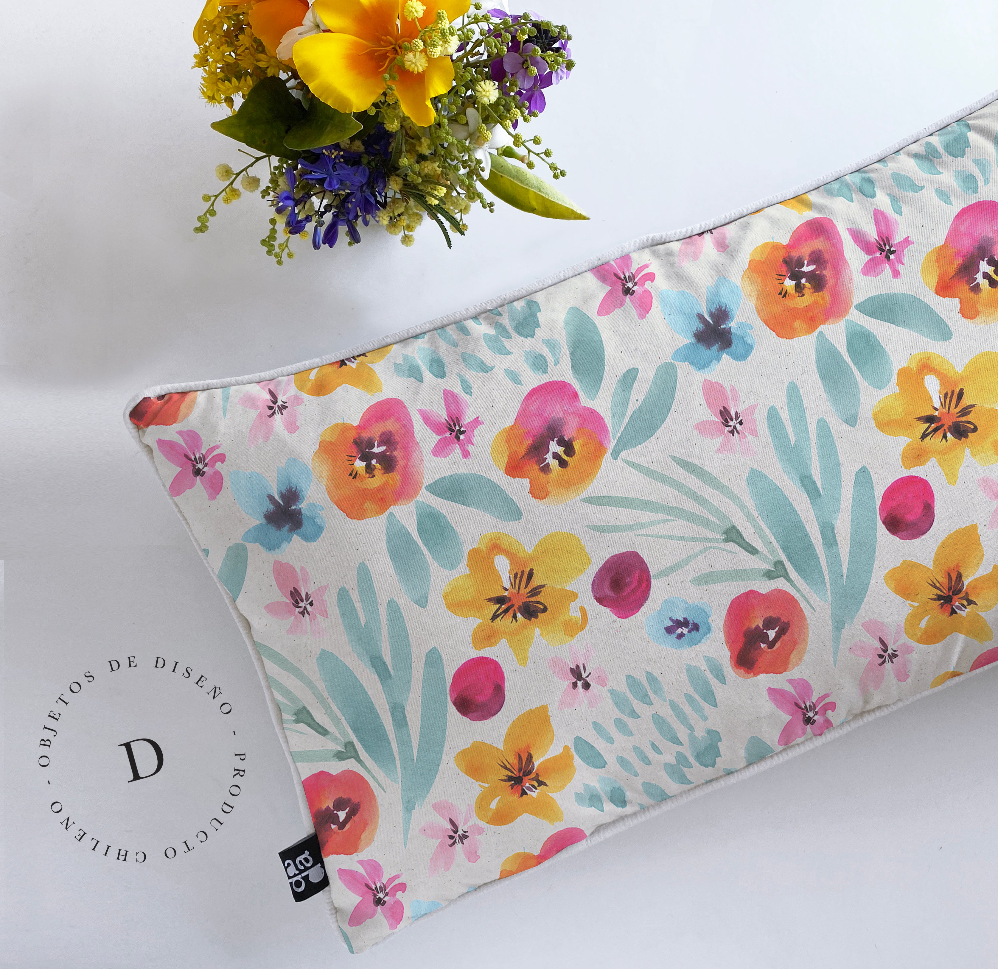 2. Cojín 60 x 40 cm: Diseño por ambos lados, con cordón perimetral, cierre invisible, relleno algodón sintético removible.