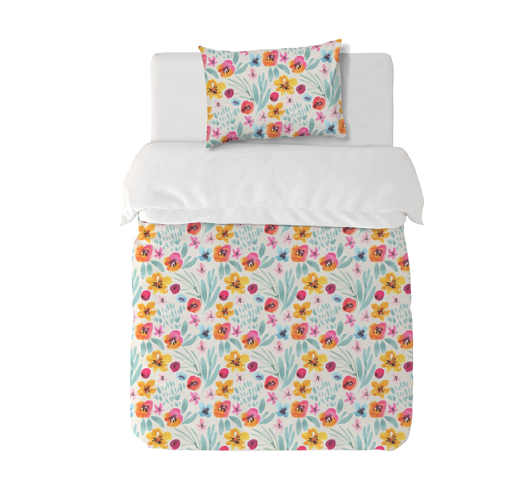 8. Funda de plumón 1 Plaza 150 x 240 cm: Funda plumón, diseño por una cara, reverso liso con cierre invisible en la parte inferior + 1 funda de almohada 70 x 50 cm con cierre invisible. No incluye rellenos.