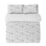 10. Funda de plumón Queen 240 x 245 cm: Funda plumón, diseño por una cara, reverso liso con cierre invisible en la parte inferior + 2 fundas de almohadas 70 x 50 cm con cierre invisible. No incluye rellenos.