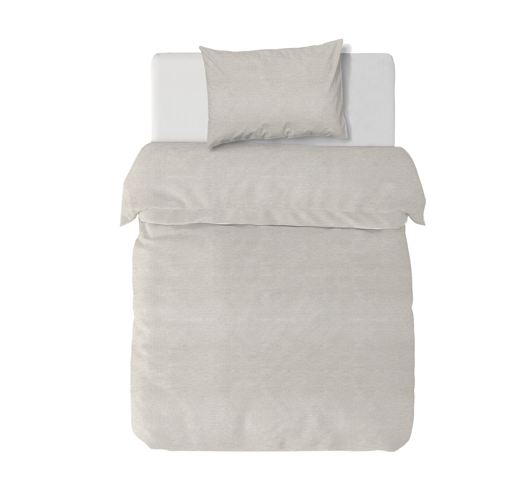 8. Funda de plumón 1 Plaza 150 x 240 cm: Funda plumón, diseño por una cara, reverso liso con cierre invisible en la parte inferior + 1 funda de almohada 70 x 50 cm con cierre invisible. No incluye rellenos.
