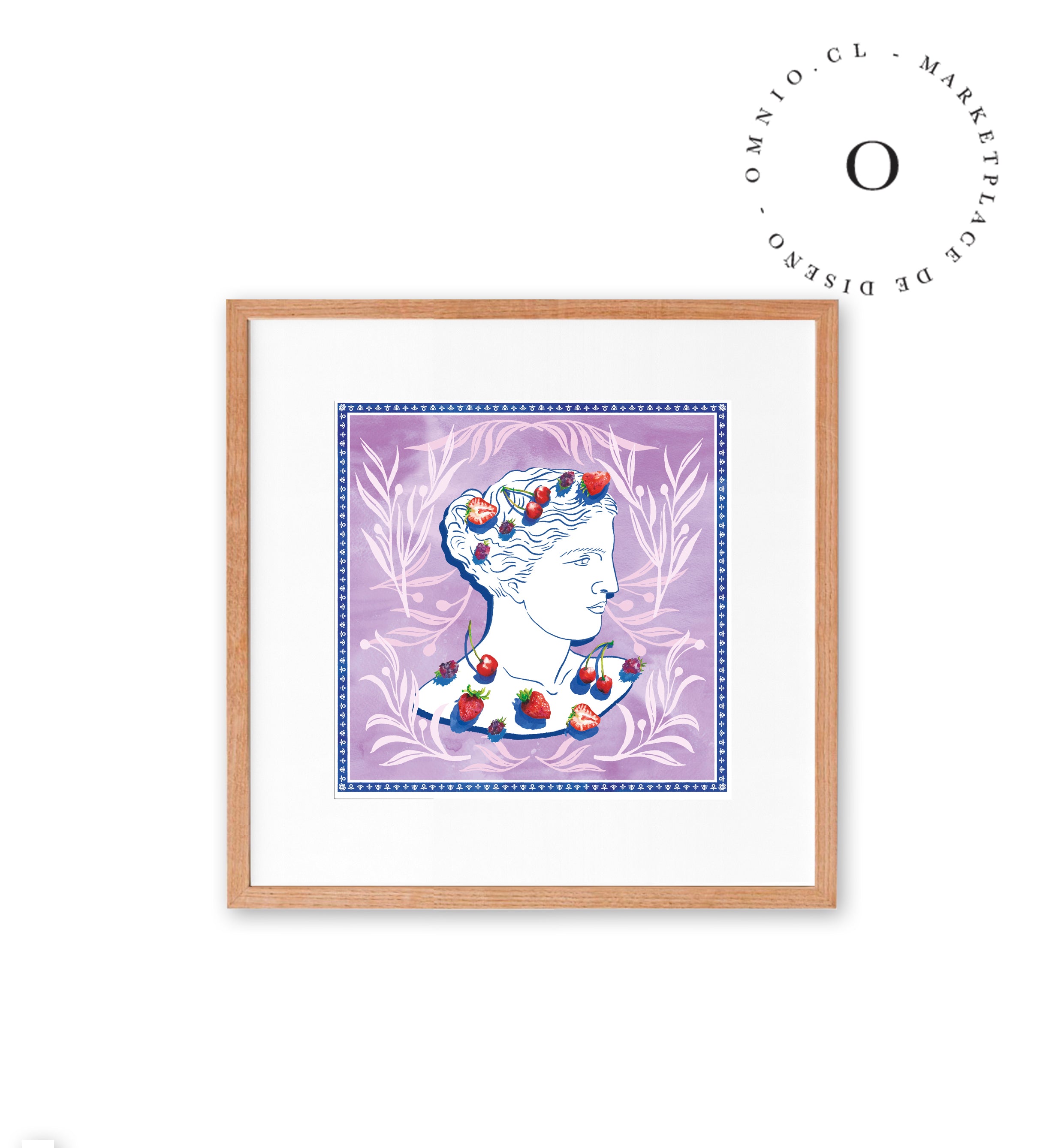 Enmarcada en marco de madera de 2 cm con vidrio de 2 mm, y lámina impresa en papel con textura lino de alta calidad.
