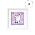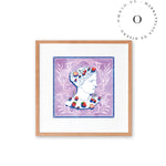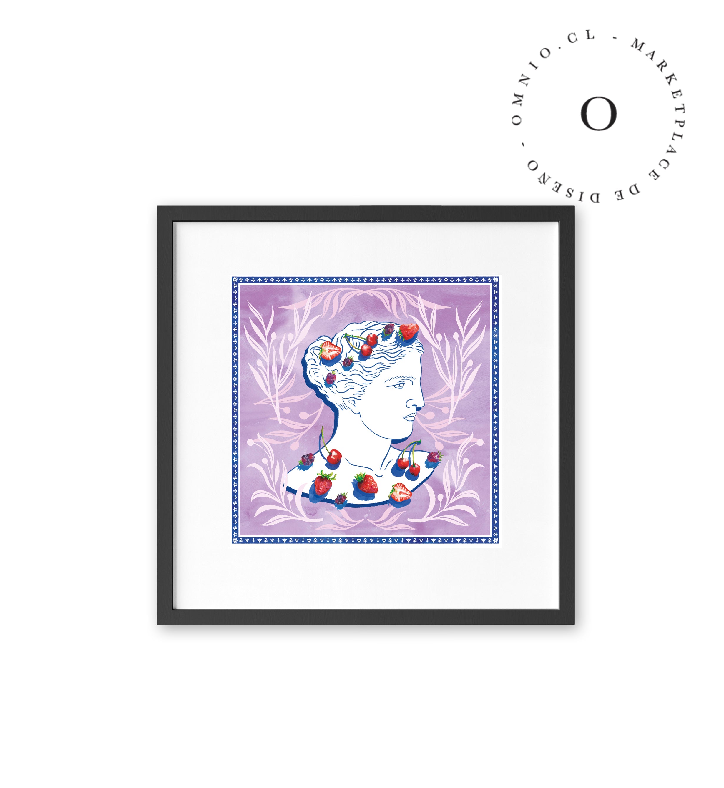 Lámina enmarcada de la artista Nina & Cala, disponible con o sin passepartout de 10 cm o 6 cm, según el formato.