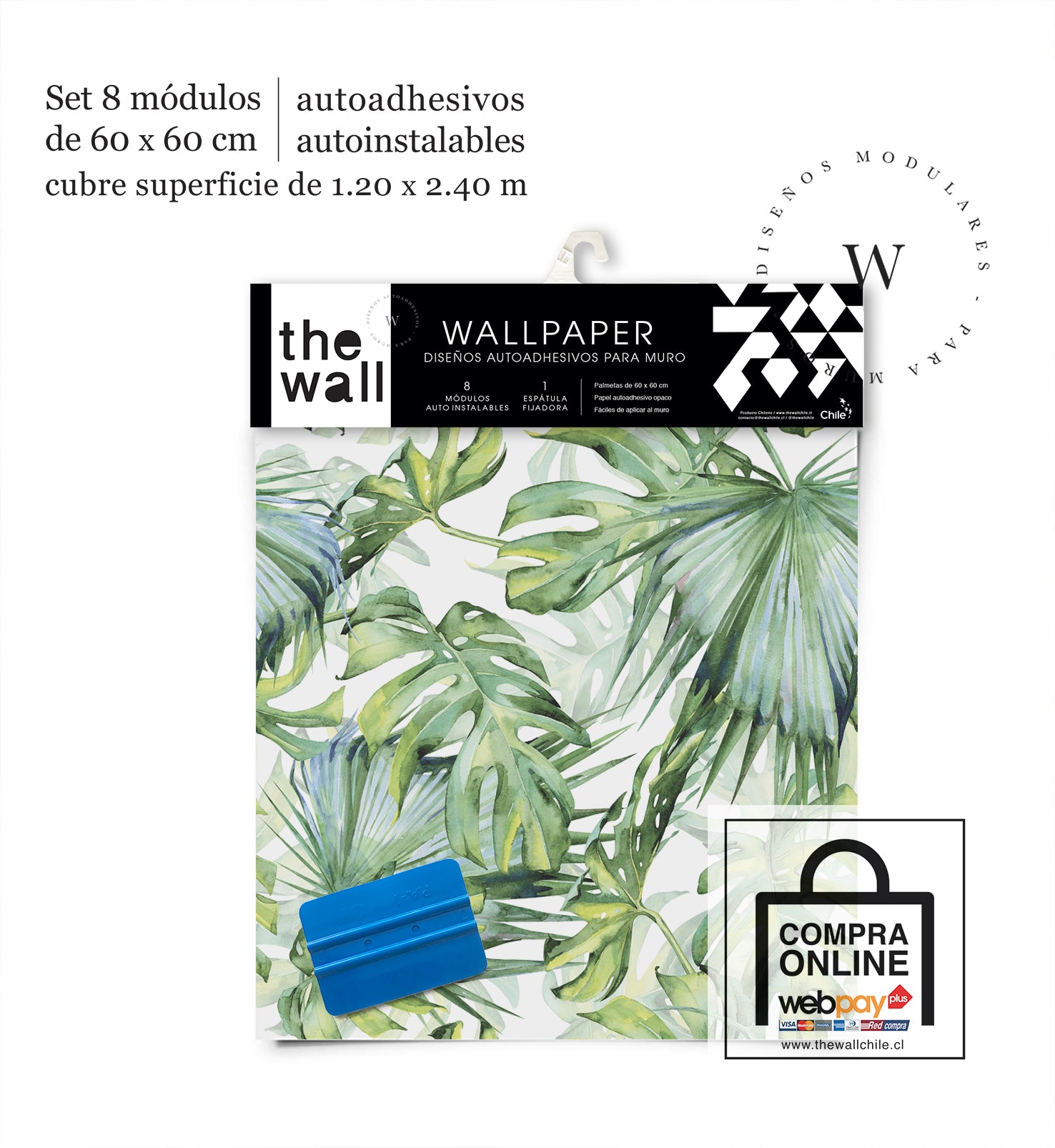 2. Set de Módulos: Módulos adhesivos y auto instalable de 60 x 60 cm que forman un patrón mayor de 1,2 x 2,4 mts (2,44 m2). Con paleta 3M para su perfecta aplicación.
