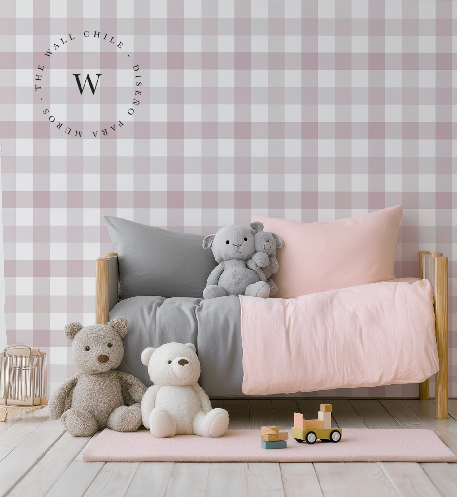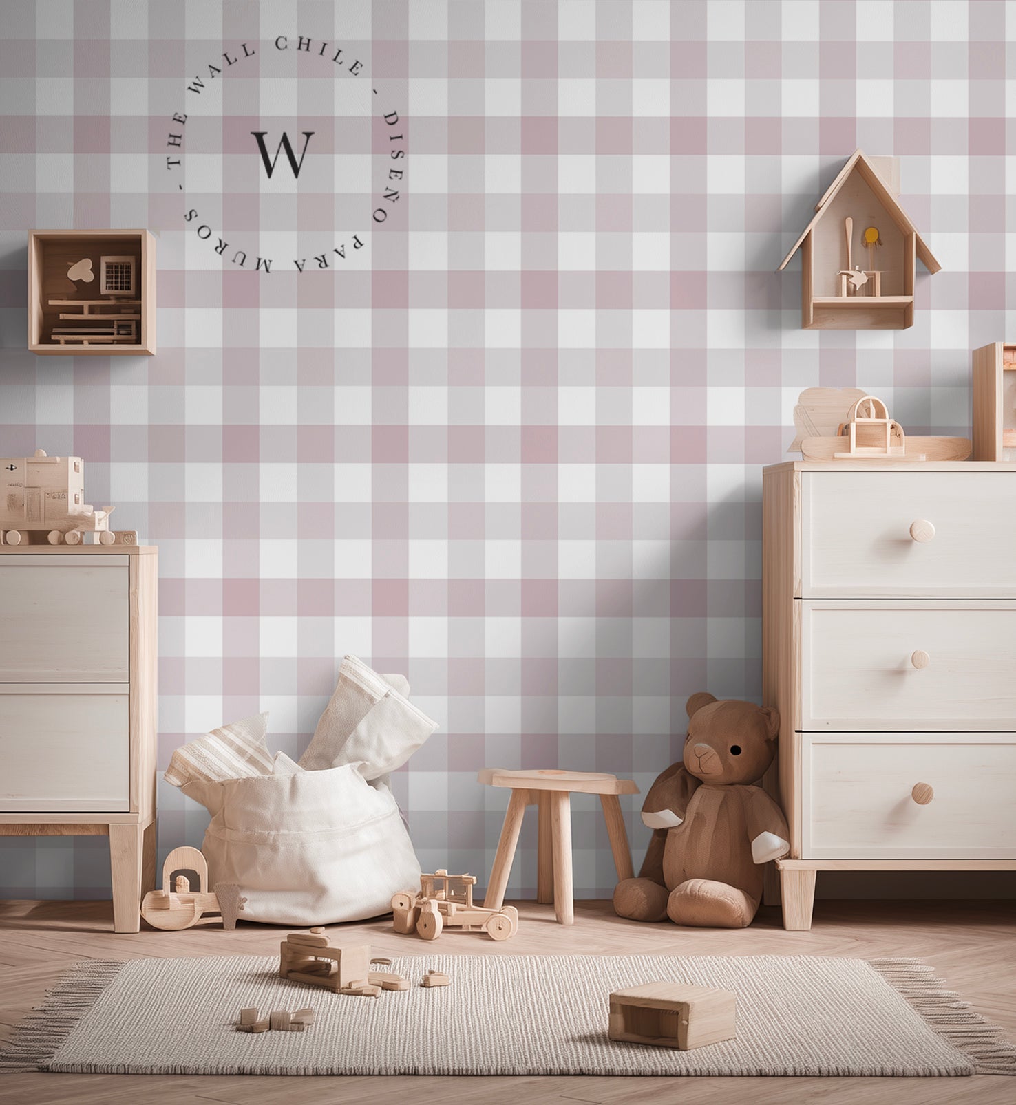 Vichy Pink reinterpreta el clásico patrón vichy en una versión delicada y contemporánea. Su trama de cuadros rosa suave sobre fondo blanco evoca la estética atemporal del diseño textil, aportando calidez y encanto a cualquier espacio.